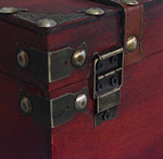 Koristeellinen puinen aarrearkku/säästölipas, jonka mukana lukko ja avain. Arkun kannessa reikä, jonka läpi voi tiputtaa esim. kolikoita/vihjelapun